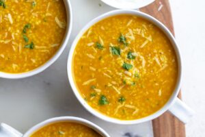 Made with a base of sautéed onion, carrots, celery, and garlic, this soup develops depth from fresh thyme, bay leaves, and optional parmesan rind. Once blended, the broth becomes silky and luxurious, perfect for simmering delicate pastina (or orzo, ditalini, or small shells). A squeeze of fresh lemon brightens every spoonful.