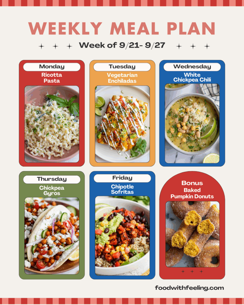 We’ve built this plan around simple, nourishing dinners that emphasize plant-based proteins, sustainable ingredients, and flavors that keep you coming back for more. From creamy pasta to zesty gyros, here’s what’s on the menu: