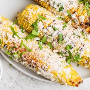 This Mexican Street Corn (Elote) recipe features smoky grilled corn coated in a creamy garlic-lime sauce and topped with cotija cheese and chili powder. Easy to make on the grill or stovetop, it’s the perfect summer side dish! The BEST Mexican Street Corn (Elote Recipe) is a Food with Feeling Recipe.