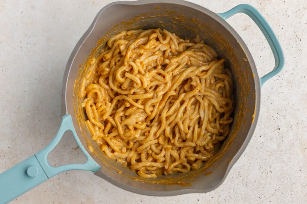 Rice noodles, udon, ramen, or spaghetti all work beautifully. Quick-cooking noodles save time on busy nights.